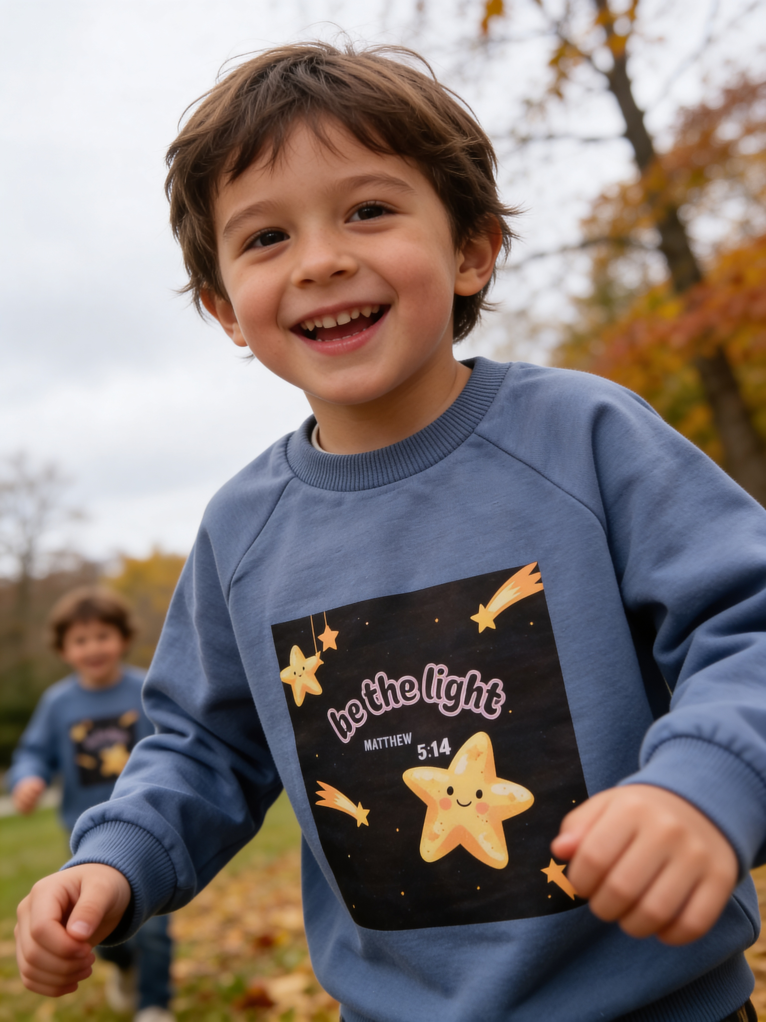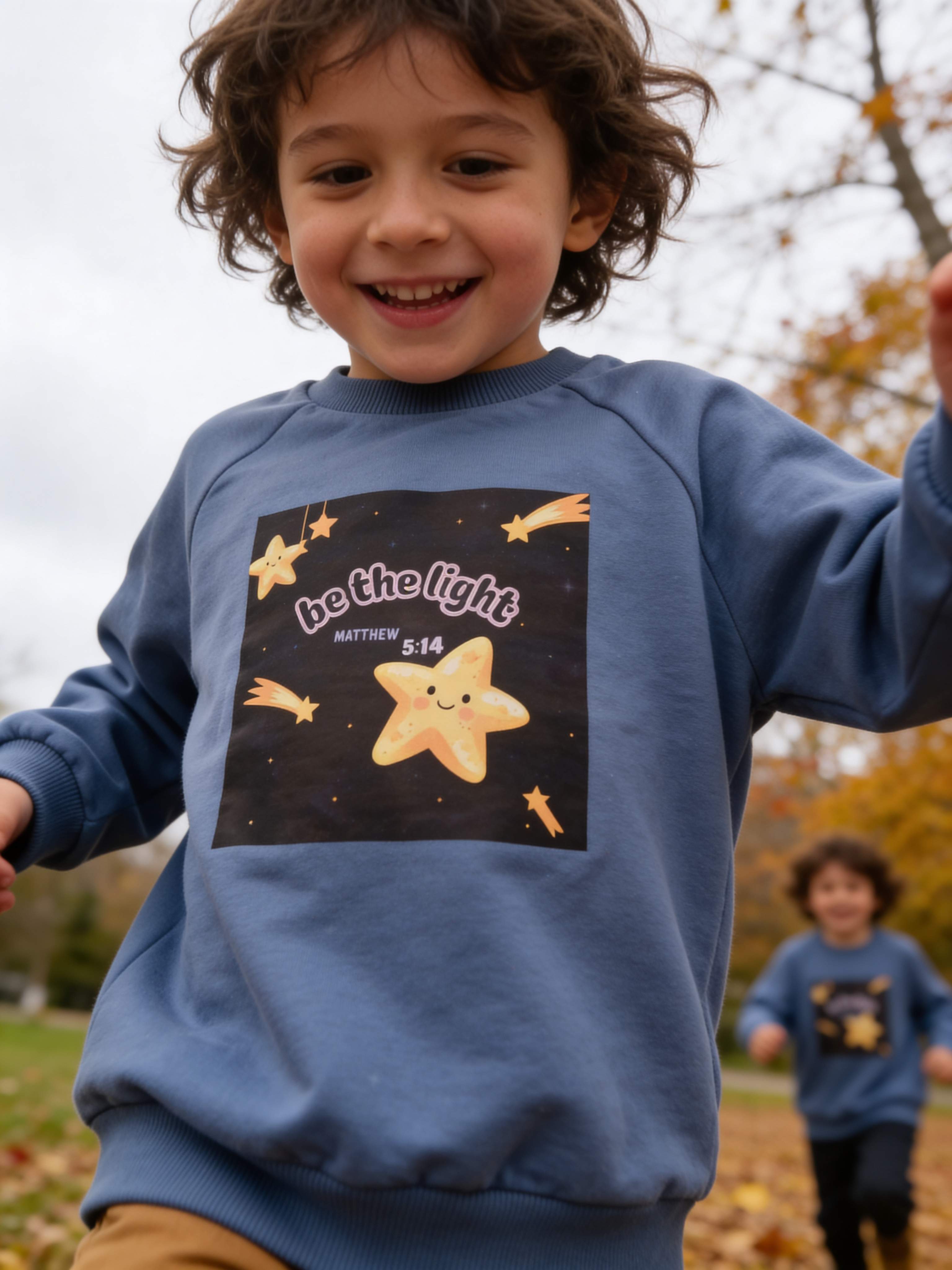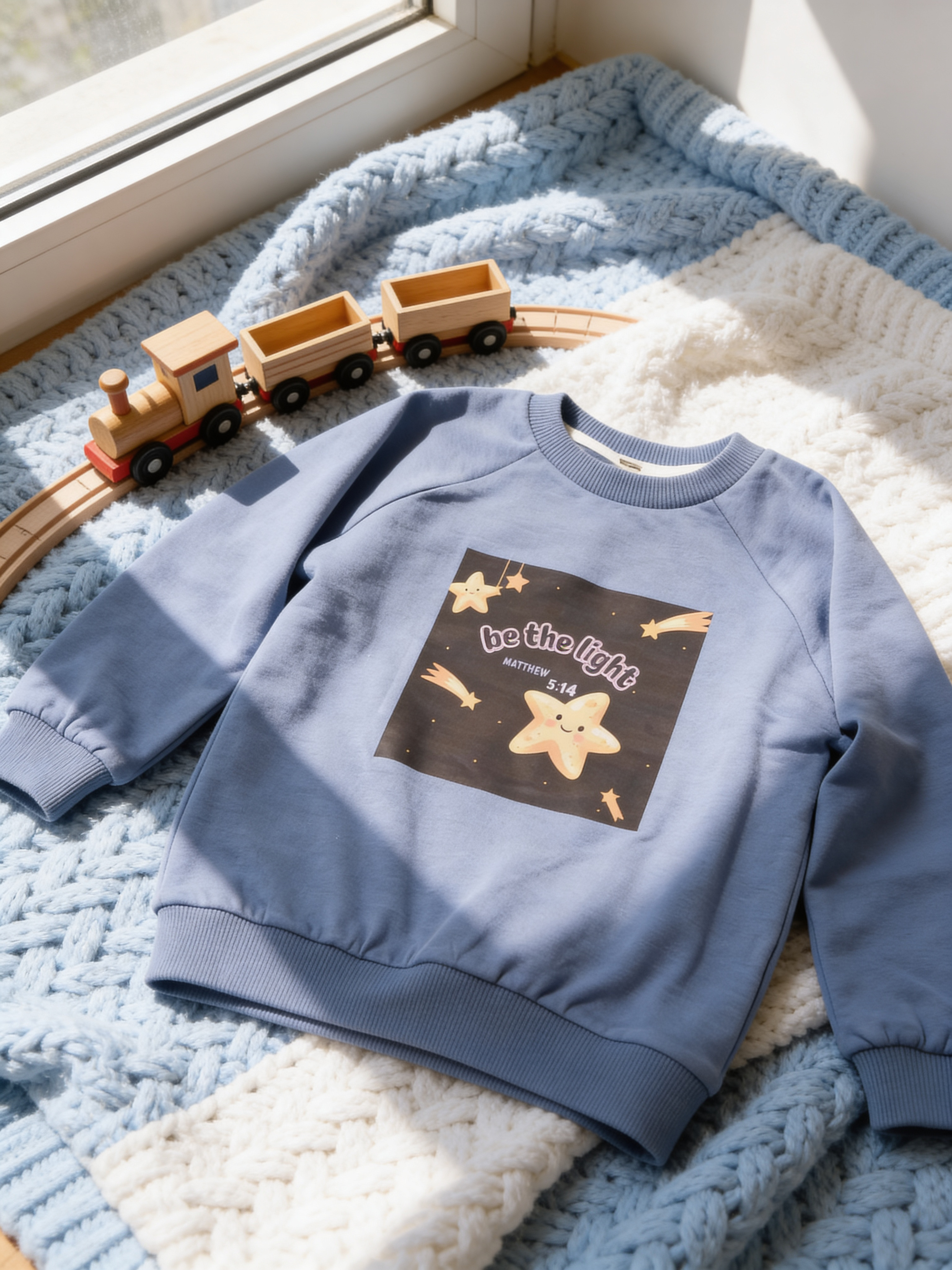 將溫柔又充滿力量的經文,化為孩子日常的穿搭。簡約字體,低調告白信仰,願孩子時刻記得:自己是世界的光,帶著愛與勇氣前行。