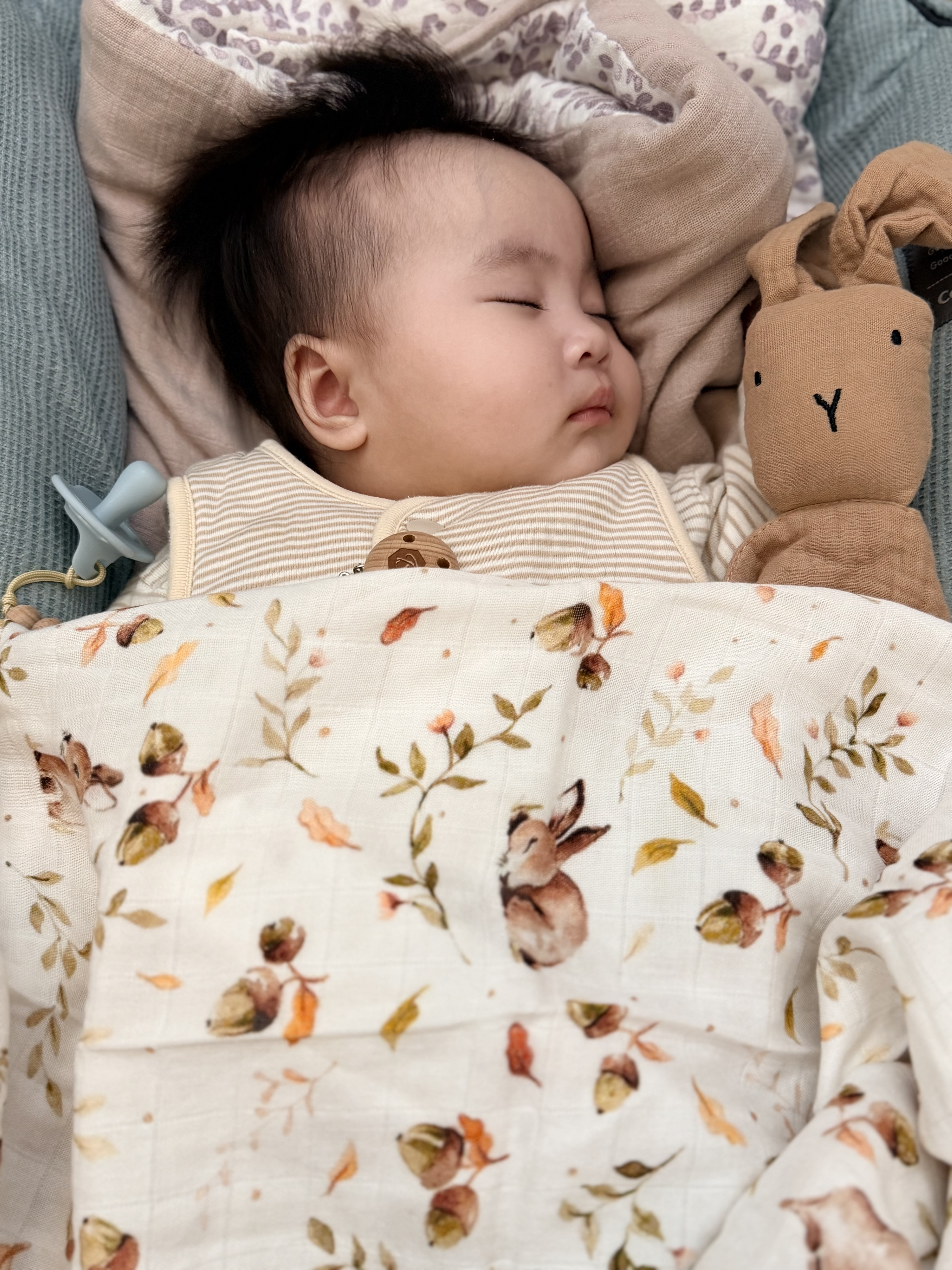 將兩款兔兔主題的柔軟好物組合在一起:四層棉紗安撫巾給寶寶安全感,竹棉包巾給寶寶溫柔包覆。無論是安撫入睡、日常包覆,一盒滿足新生兒的兩種需求。